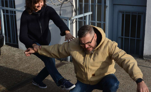 In diesem Video geht es darum, wenn der Aggressor sich nicht abschrecken lässt und die Frau anfassen will, um Macht auszuüben. Typische Situationen im öffentlichen Räumen, wie Parkplatz, Straßenbahn, Fahrstühle, Diskotheken etc. werden durchgespielt und Szenarien im Bereich der Deeskalation und Selbstverteidigung werden geübt. Die Frau soll lernen, wie man sich effektiv gegen Griffe zur Wehr setzten kann, auch gegen körperlich stärkerer Gegner.