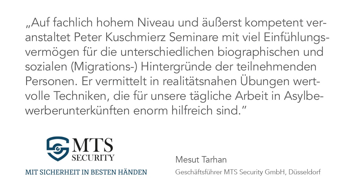 Beratung auch spezielle Workshops zur Deeskalation sowie eine umfangreiche