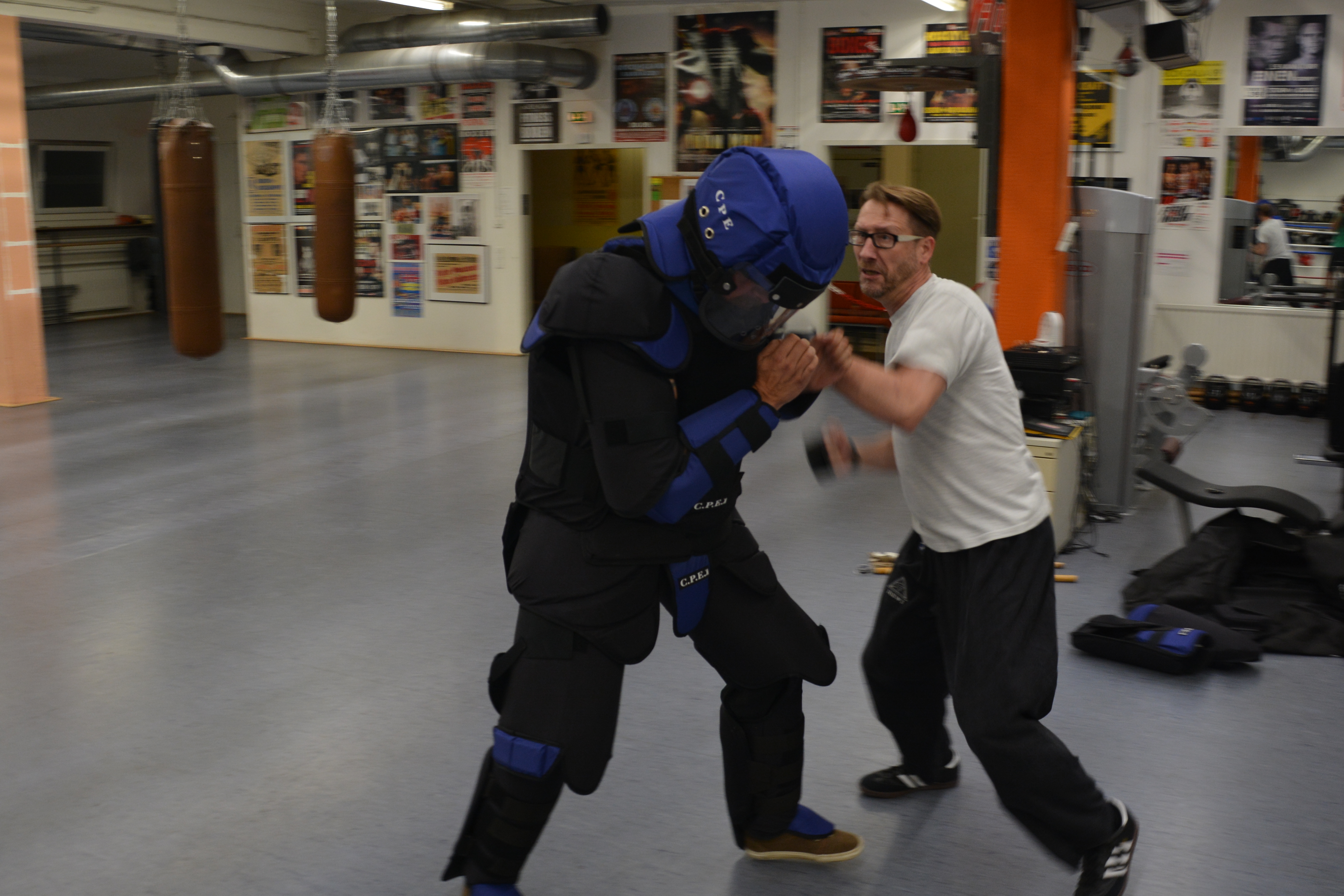 Dieser spezielle Vollkontaktschutzanzug ist für realistische Selbstverteidigung unter Vollkontaktbedingungen ausgerichtet. Selbst schwere Körpertreffer mit Holzschlägern, Escrimastücken nimmt der Anzug auf, ohne das man was davon merkt. Mit diesem Anzug können Schlag- und Tritthemmungen abgebaut werden, er ist auch geeignet spezielle Gefahrensituationen an Einlassbereichen, oder im Bereich des Personenschutzes zu trainieren und zu simulieren. Sicherheitsfirmen können ihre Mitarbeiter im Bereich des Hand to Hand fights ausbilden.